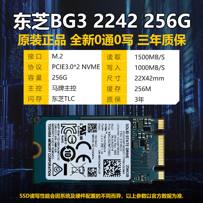 📚 东芝NVME 2242固态硬盘BG3 128G 256G 512G M2笔记本pcie高速SSD