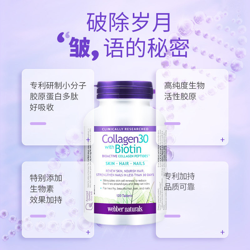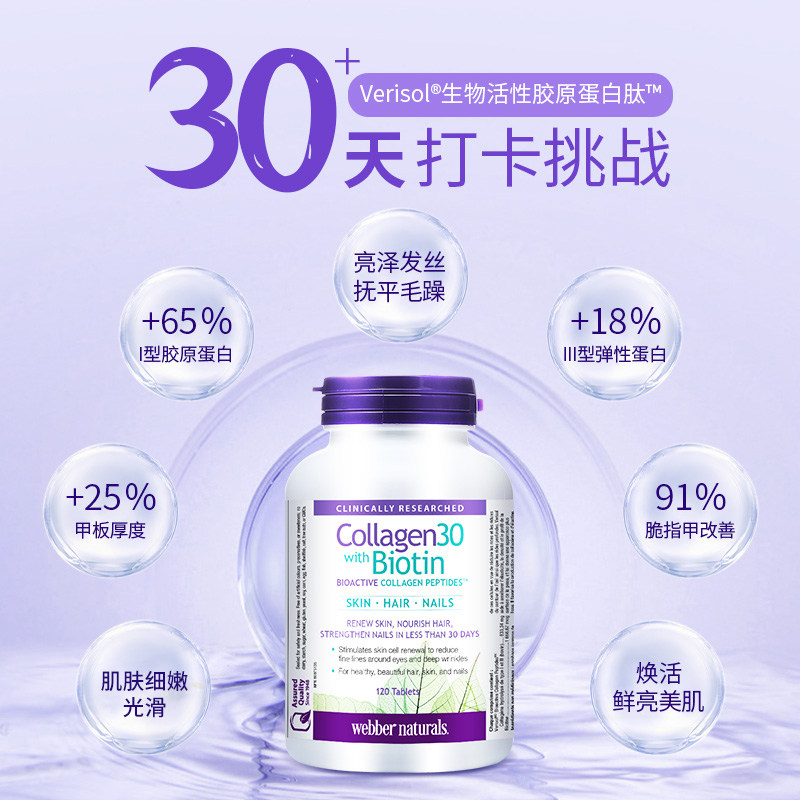 📚 webbernaturals伟博进口Verisol小分子多肽胶原蛋白加生物素120粒
