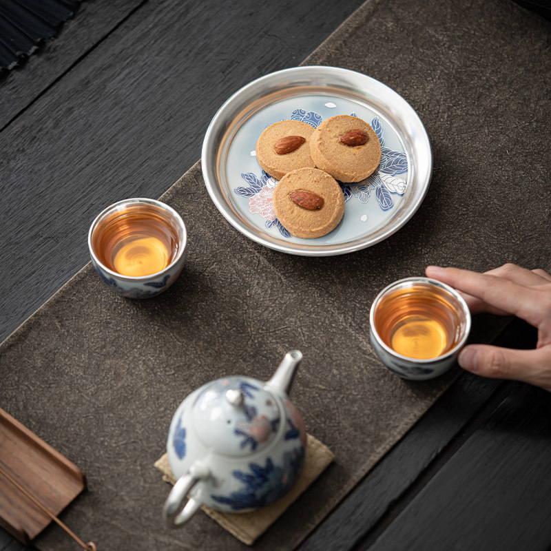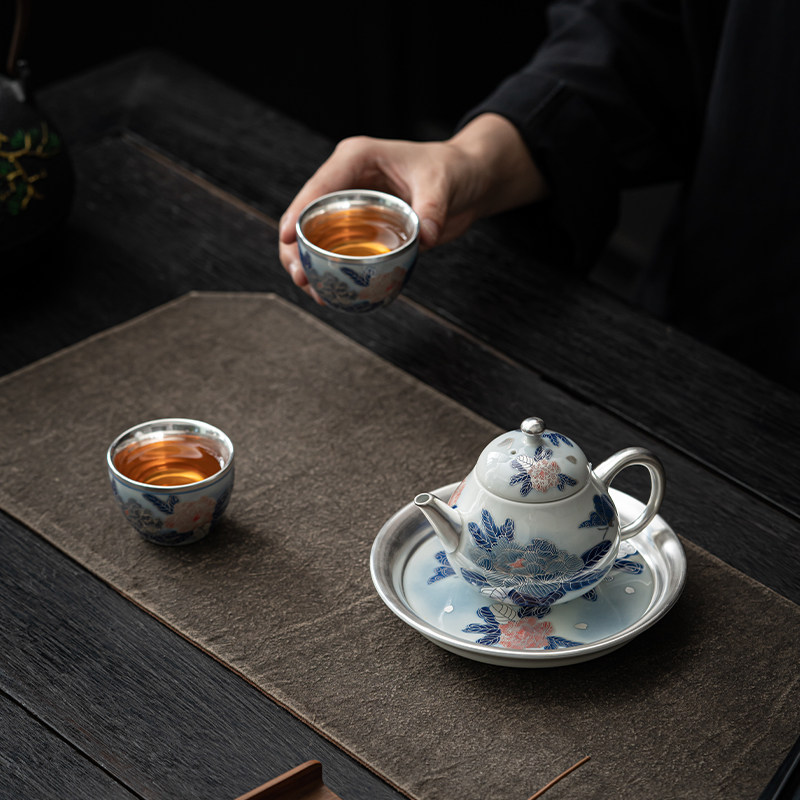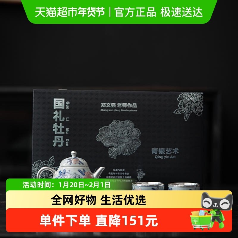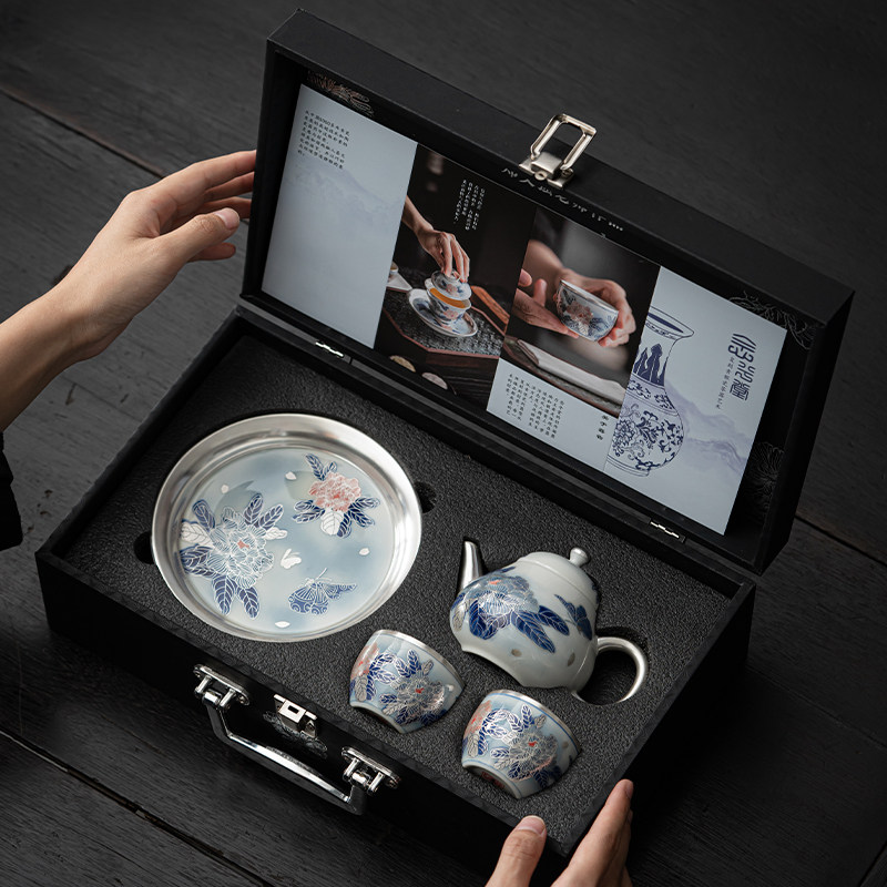 📚 苏氏陶瓷 鎏银国礼牡丹壶茶具套装非遗传承人郑文强作品礼盒