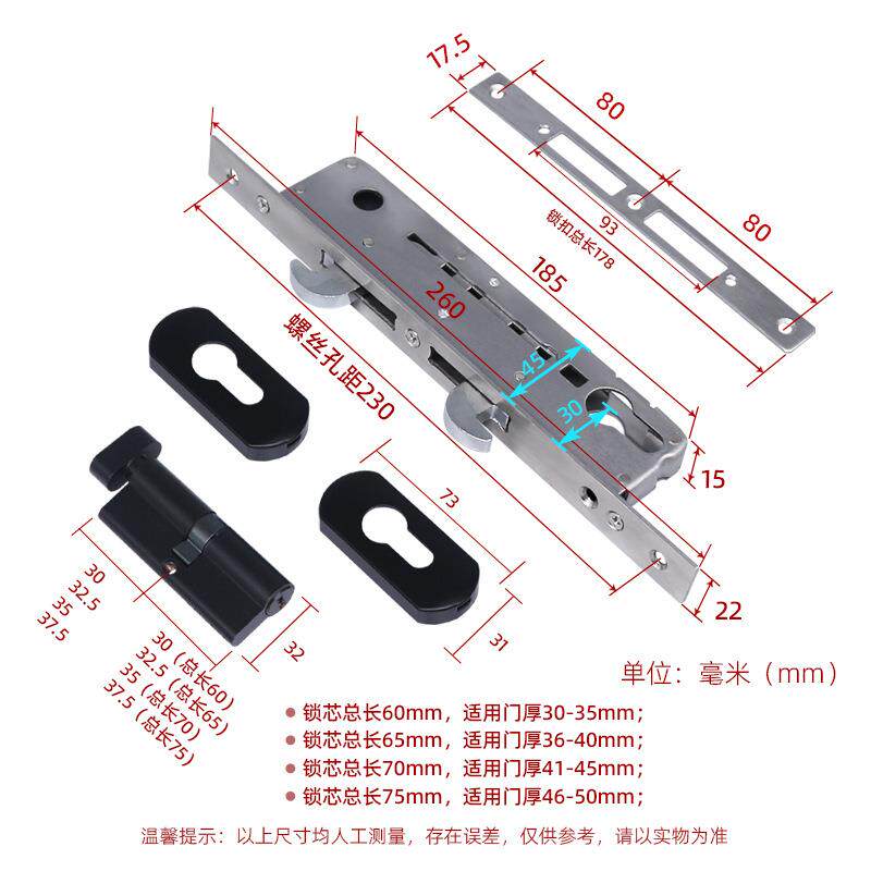 📚 推拉门锁重型门一字锁双钩锁纯铜锁芯门锁把手含锁双钩锁体