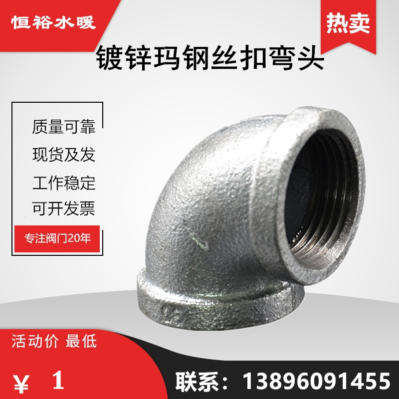 📚 弯头镀锌玛钢热燃气消防锅炉水管90度铁内螺纹丝扣管件DN15