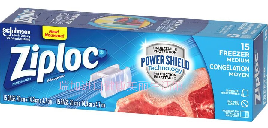 📚 包邮加拿大ZIPLOC分装密封带滑动拉冷冻保鲜袋中号2盒30个食品级