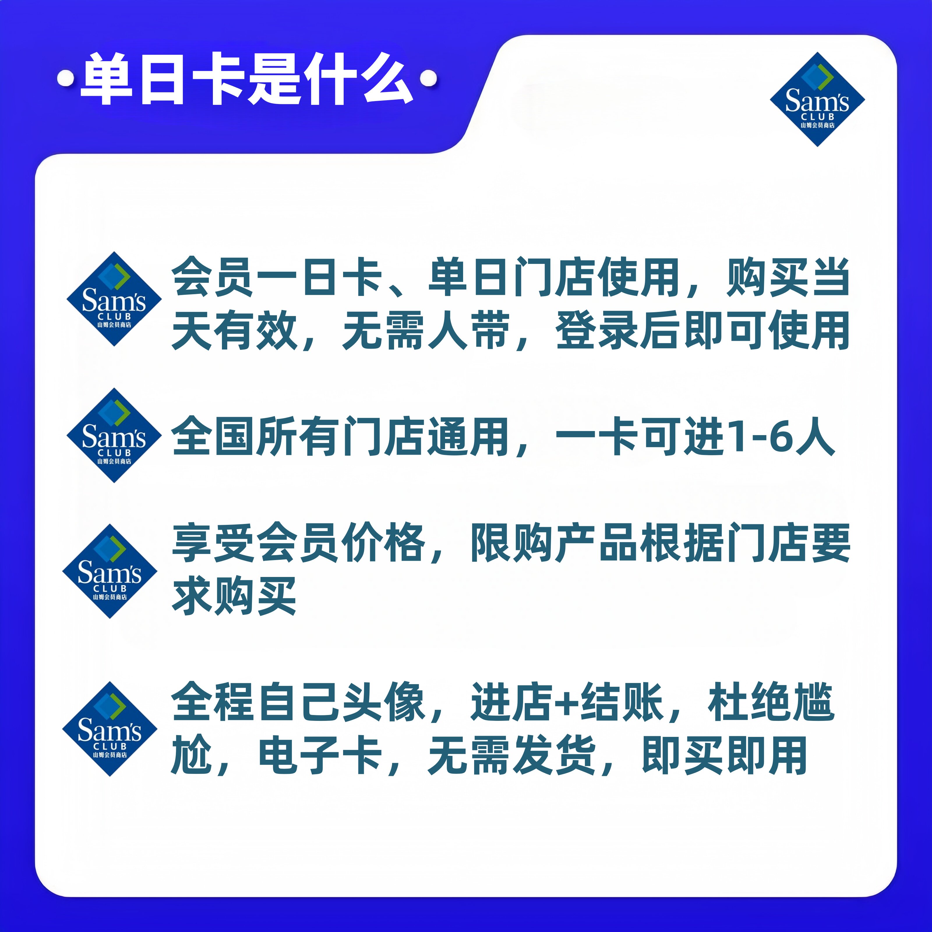 📚 山姆会员一次卡山姆一日体验卡实体店山姆单次山姆超市体验卡一次