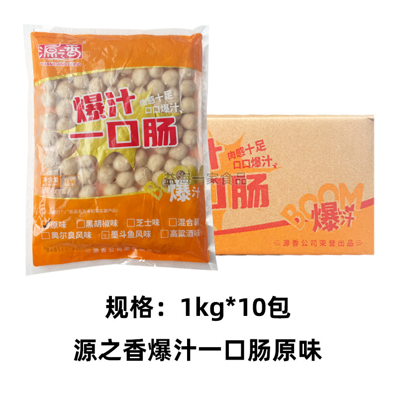 📚 源之香爆汁一口肠1kg*10包原味黑椒味冷冻烤肠迷你一口肠爆汁肠