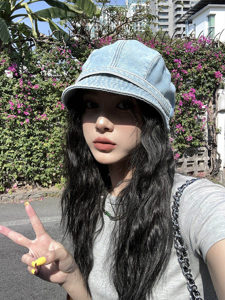 📚 东大门同款复古牛仔鸭舌堆堆帽春夏出街造型贝雷帽女显脸小画家帽