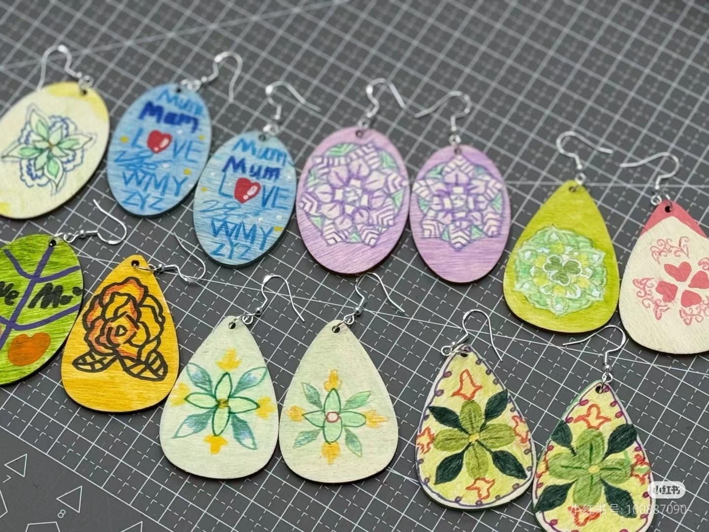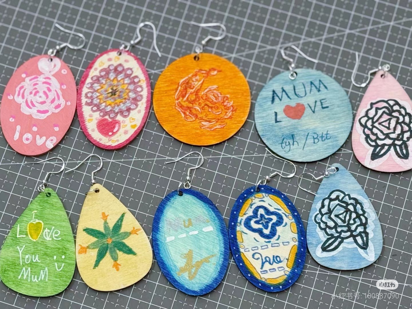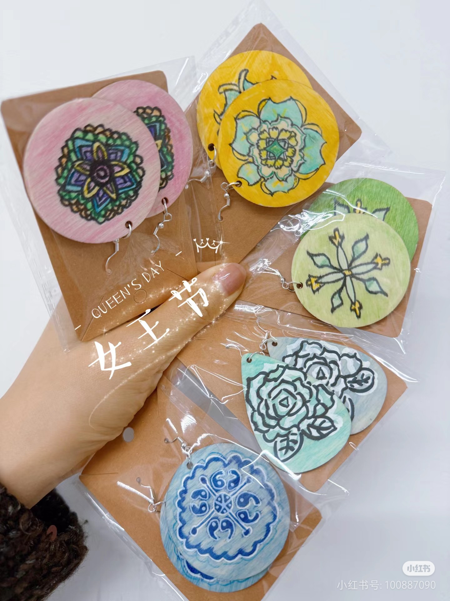 📚 6.1儿童节亲子节手工diy民族风原木片木质耳环女耳坠彩绘耳饰