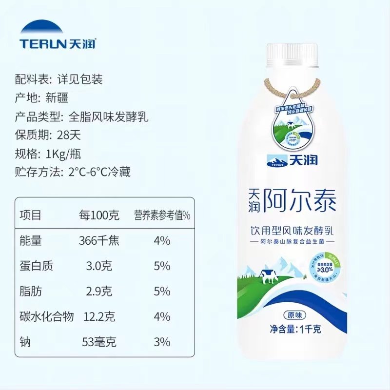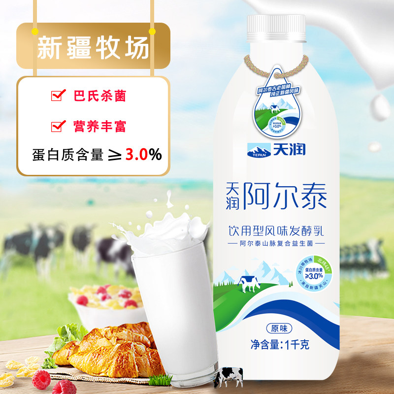 📚 新日期 新疆天润阿尔泰低温酸奶饮用型风味发酵乳原味益生菌1kg装