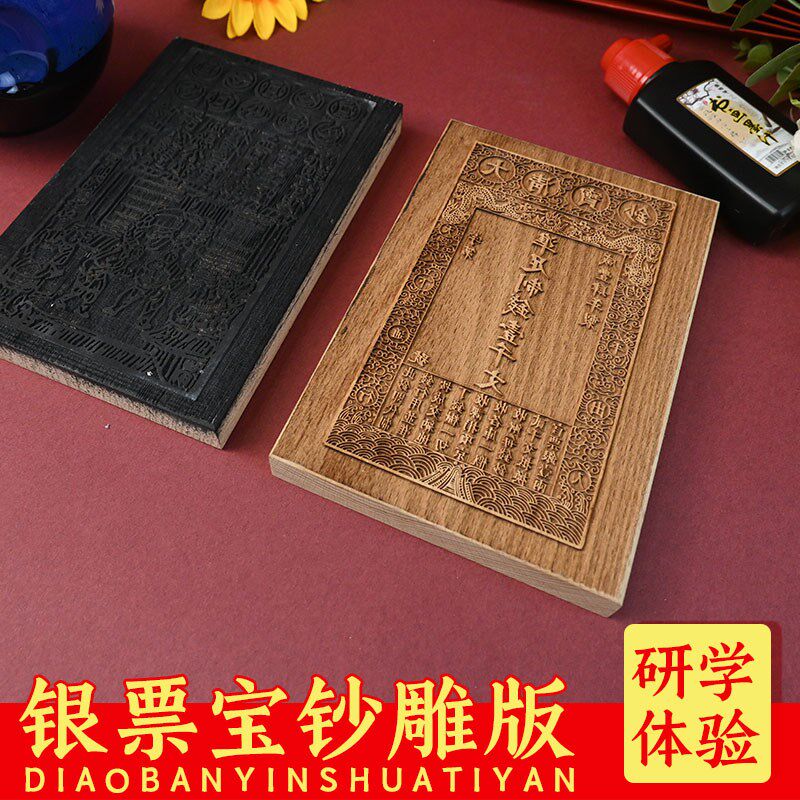 📚 清代宝钞银票黑白木刻雕版印刷术体验DIY研学图文定制仿古钱图案