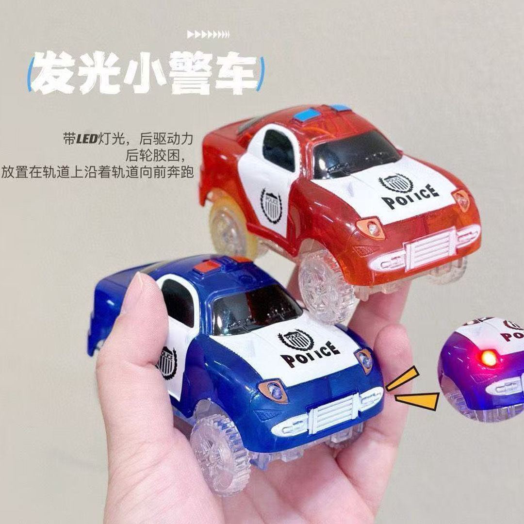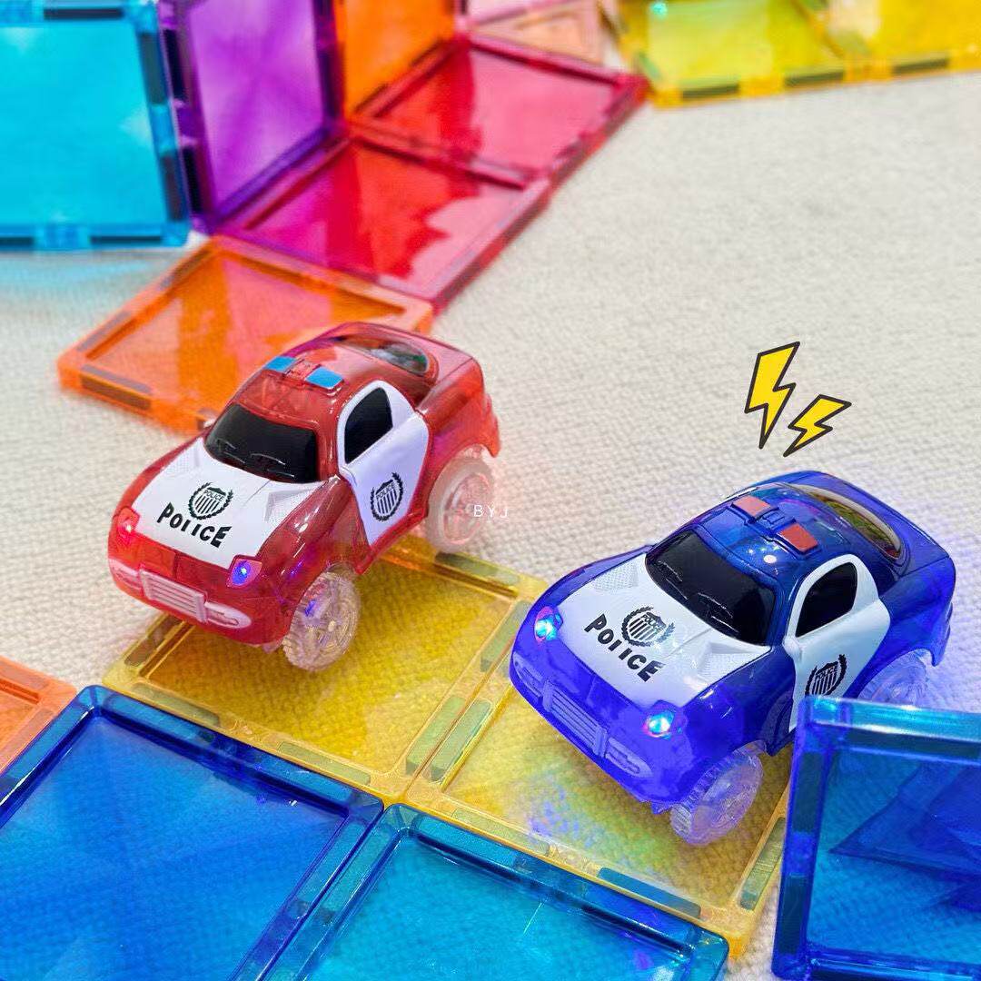 📚 儿童磁力片轨道车电动发光警车吉普小汽车小火车轨道专用玩具小车