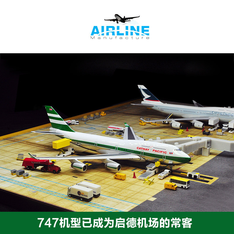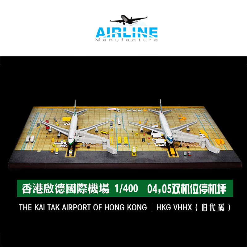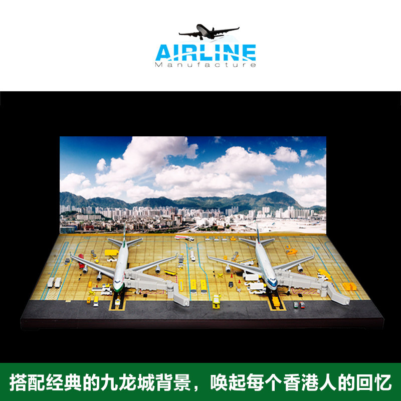 📚 1:400合金飞机模型香港启德机场地景双机位沙盘木质地台