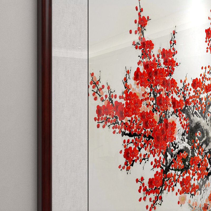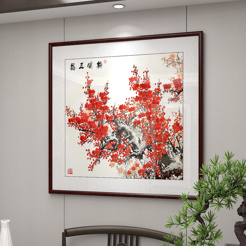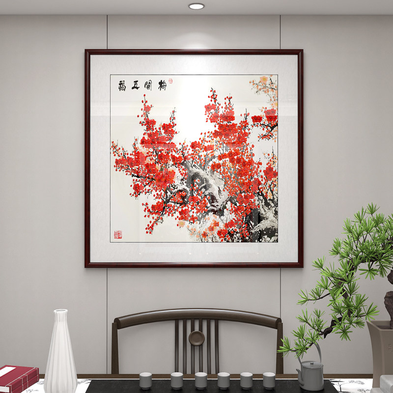📚 梅花挂画斗方形国画红梅报春图花鸟画茶室书房壁画餐厅客厅装饰画