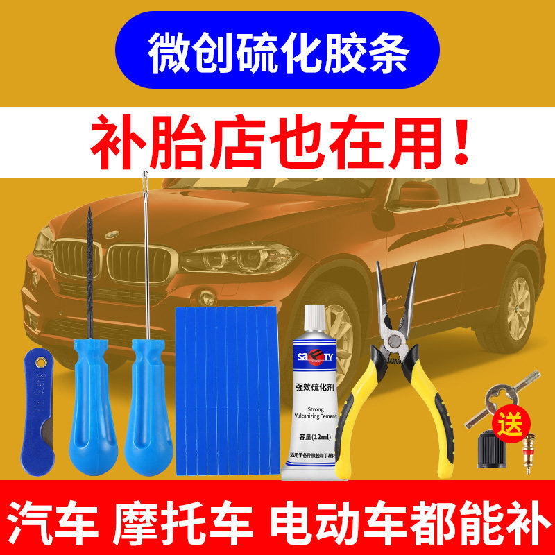 📚 微创补胎工具套装汽车摩托车电动电瓶车真空轮胎硫化胶条修补神器