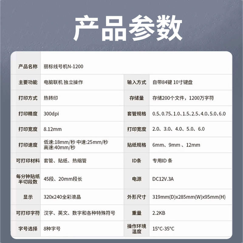 📚 丽标线号机N-1200号码管打印机电脑线号打印机便携式打号机电线套管打码机热缩管打印机贴纸打码机线管打标机
