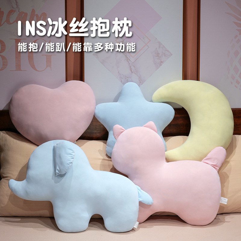 📚 夏季冰丝爱心抱枕凉感星星月亮玩偶睡觉抱娃娃ins少女心动物公仔