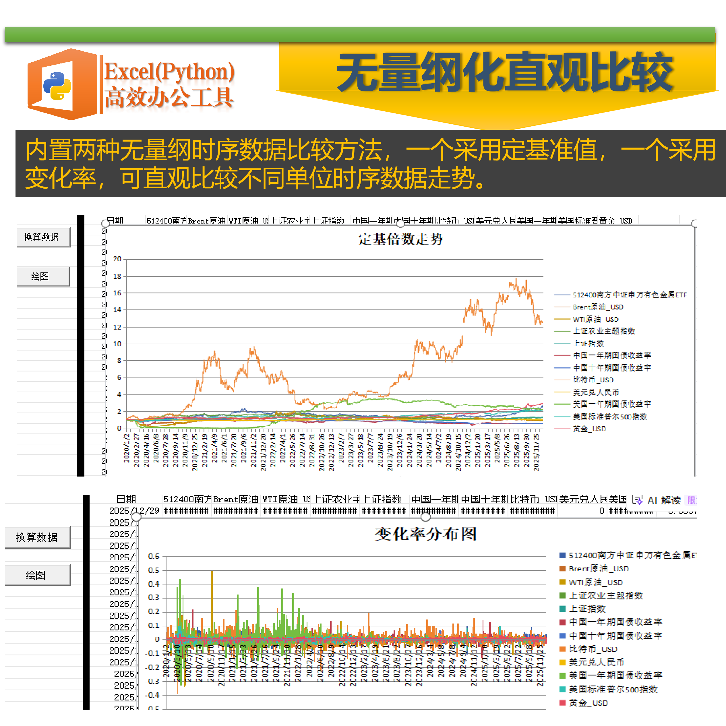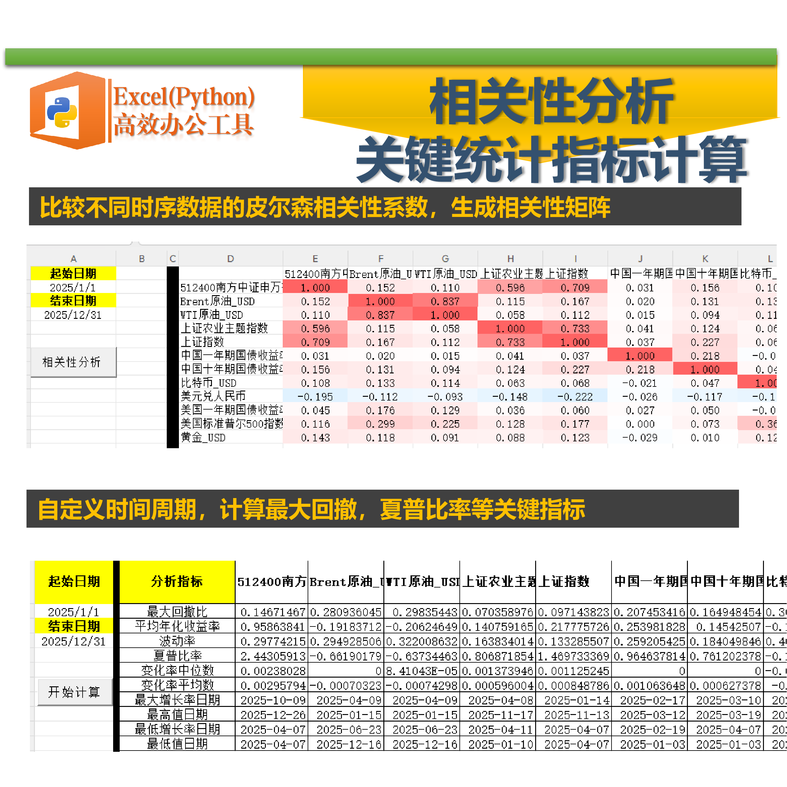 📚 时序数据分析器excelVBA相关性分析最大回撤夏普比率自动计算