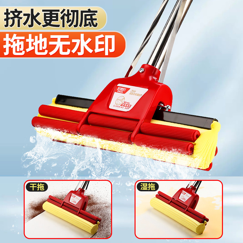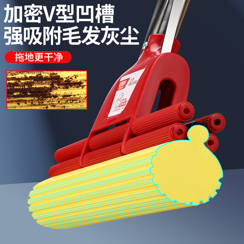 📚 好媳妇拖把头替换头胶棉海绵头滚轮式27 33 38CM通用型2个装家用