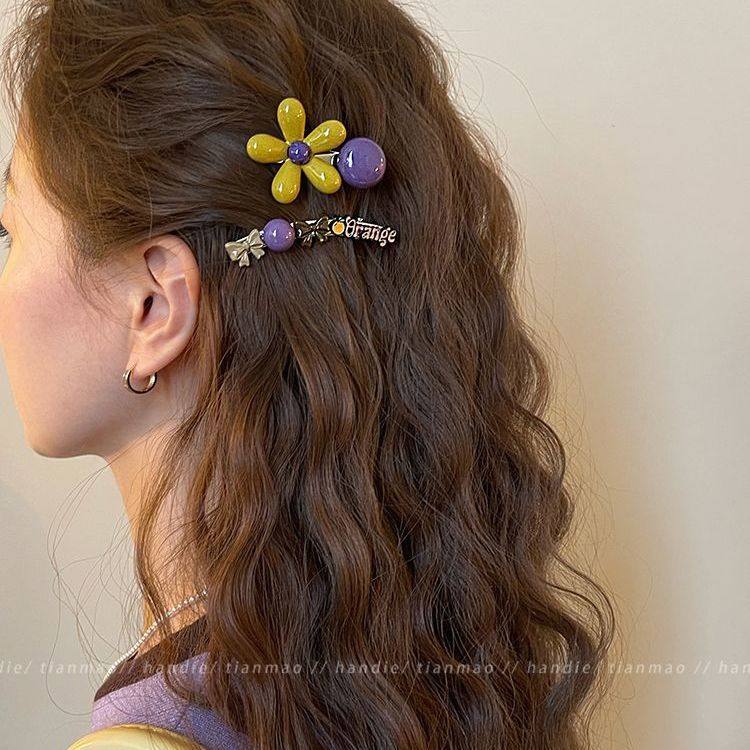 📚 甜美花朵圆珠字母发夹女2025新款可爱鸭嘴夹侧边夹碎发刘海夹发饰