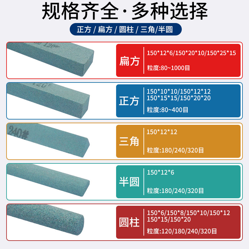 📚 绿碳化硅砂条圆条正方扁方三角半圆绿碳油石条 磨刀石油石150*12