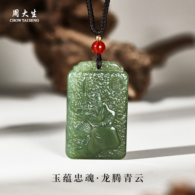 📚 周大生官方天然和田玉吊坠关公神像天然碧玉玉石生日礼物送男朋友