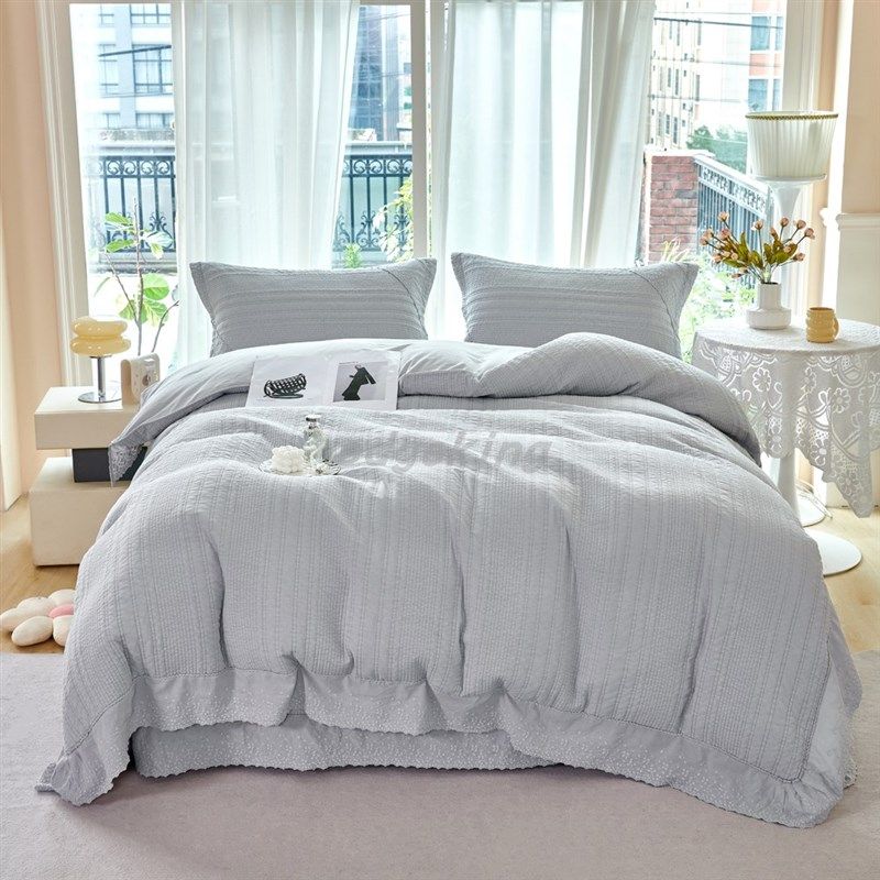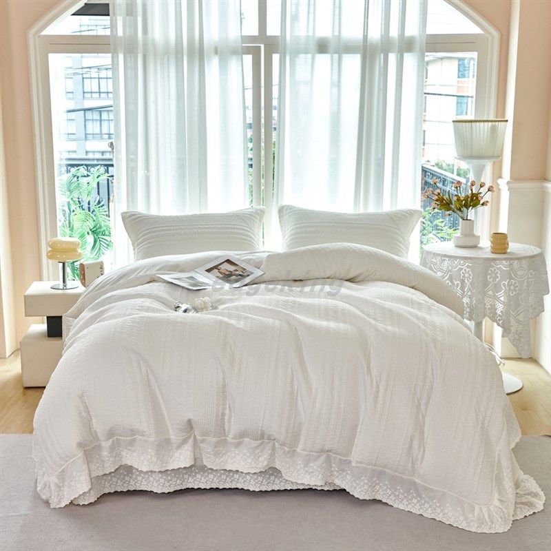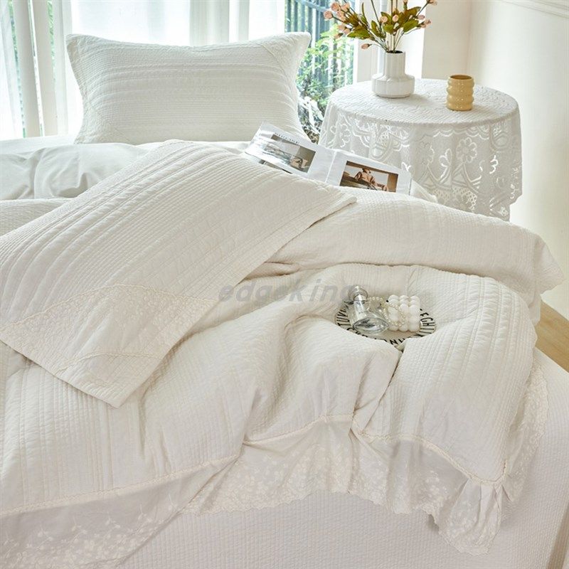 📚 浦江工厂小时光巴厘纱砂洗床盖四件套绗缝被套蕾丝.花边公主风