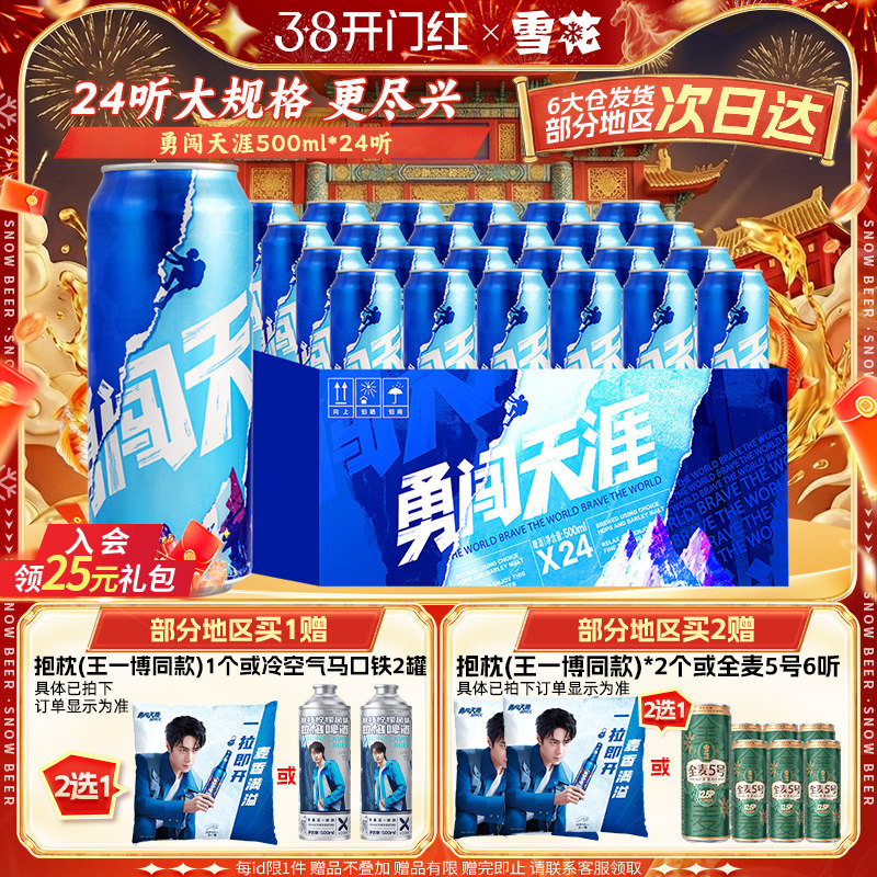 📚 雪花啤酒勇闯天涯500ML*24听整箱批发麦汁浓度8度罐装官方旗舰店