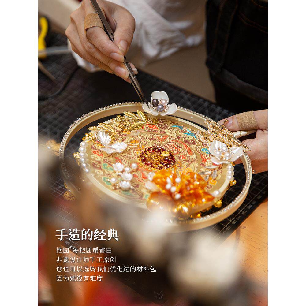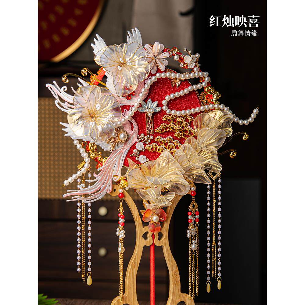 📚 燕园花烛秀河古风重工扇新娘婚纱扇手工DIY材料包成品