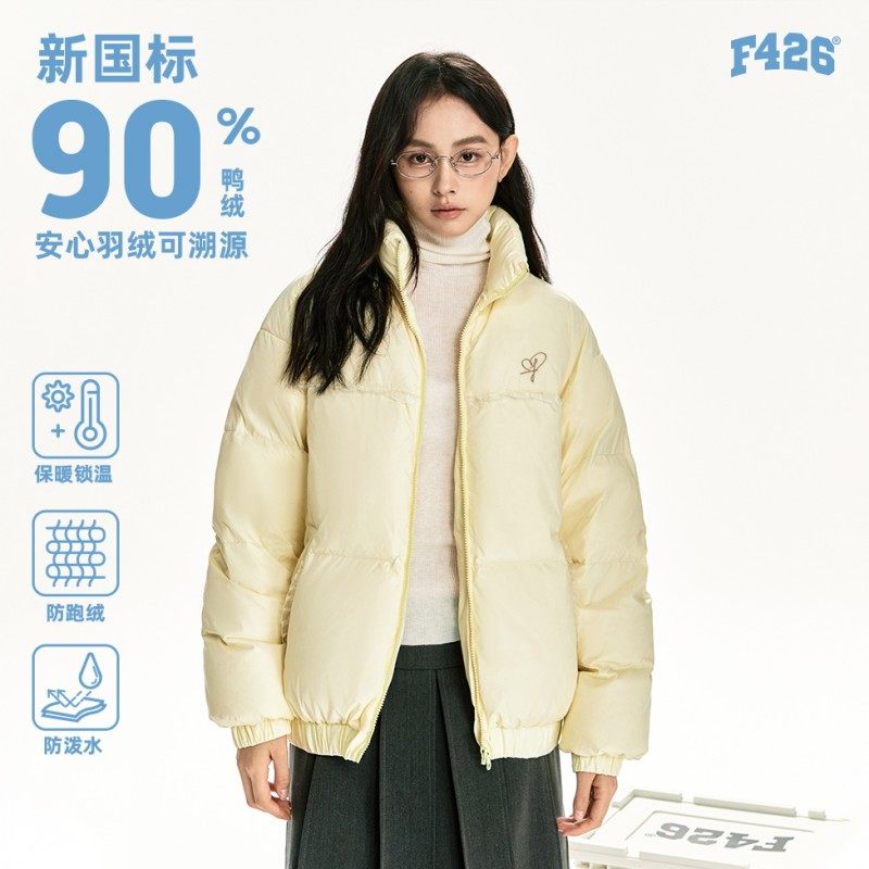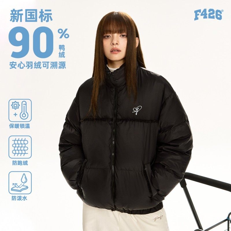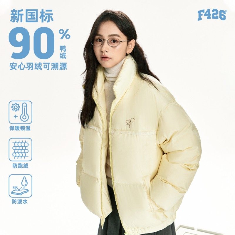 📚 【羽绒系列】F426奥莱店国潮冬季宽松休闲保暖立领褶皱花边羽绒服