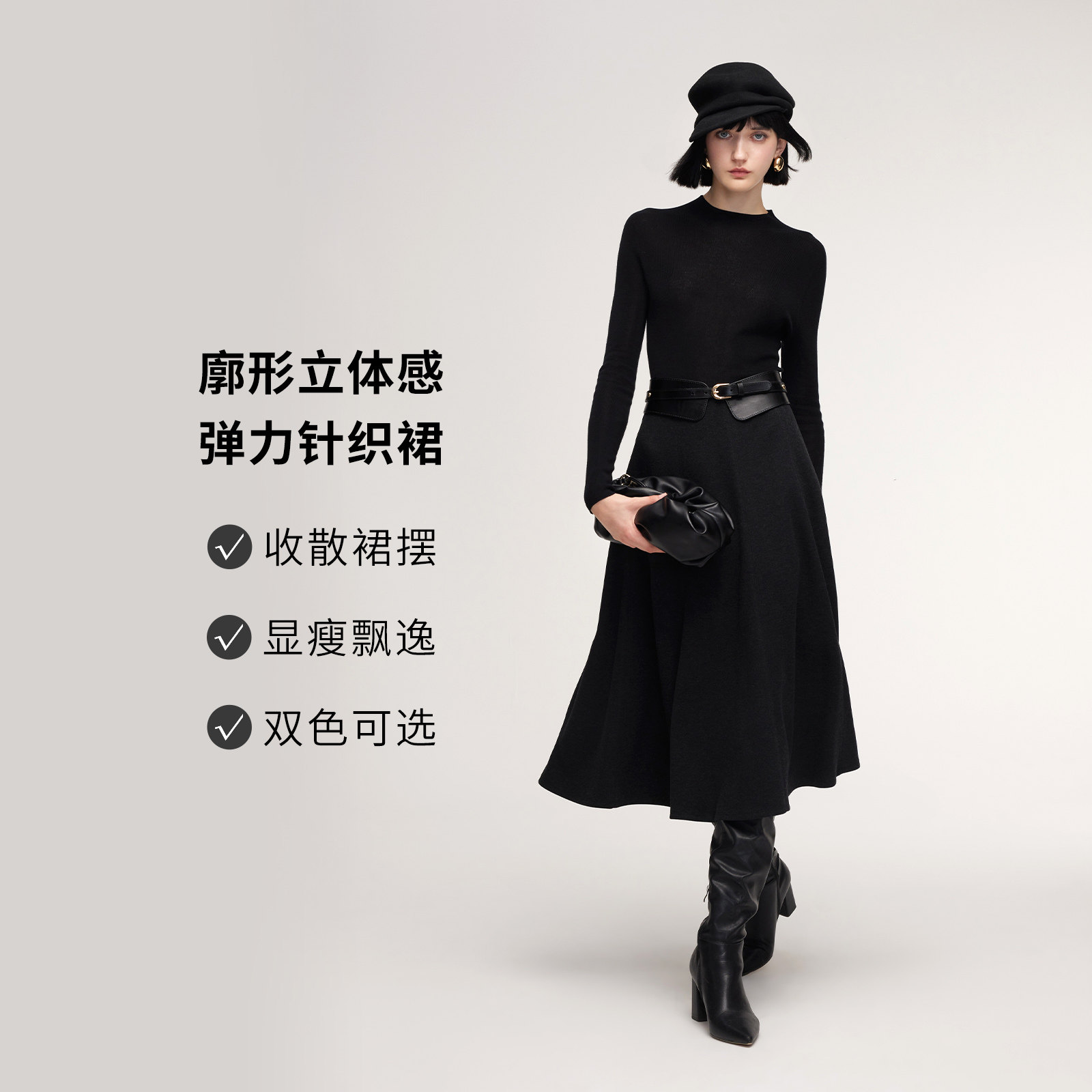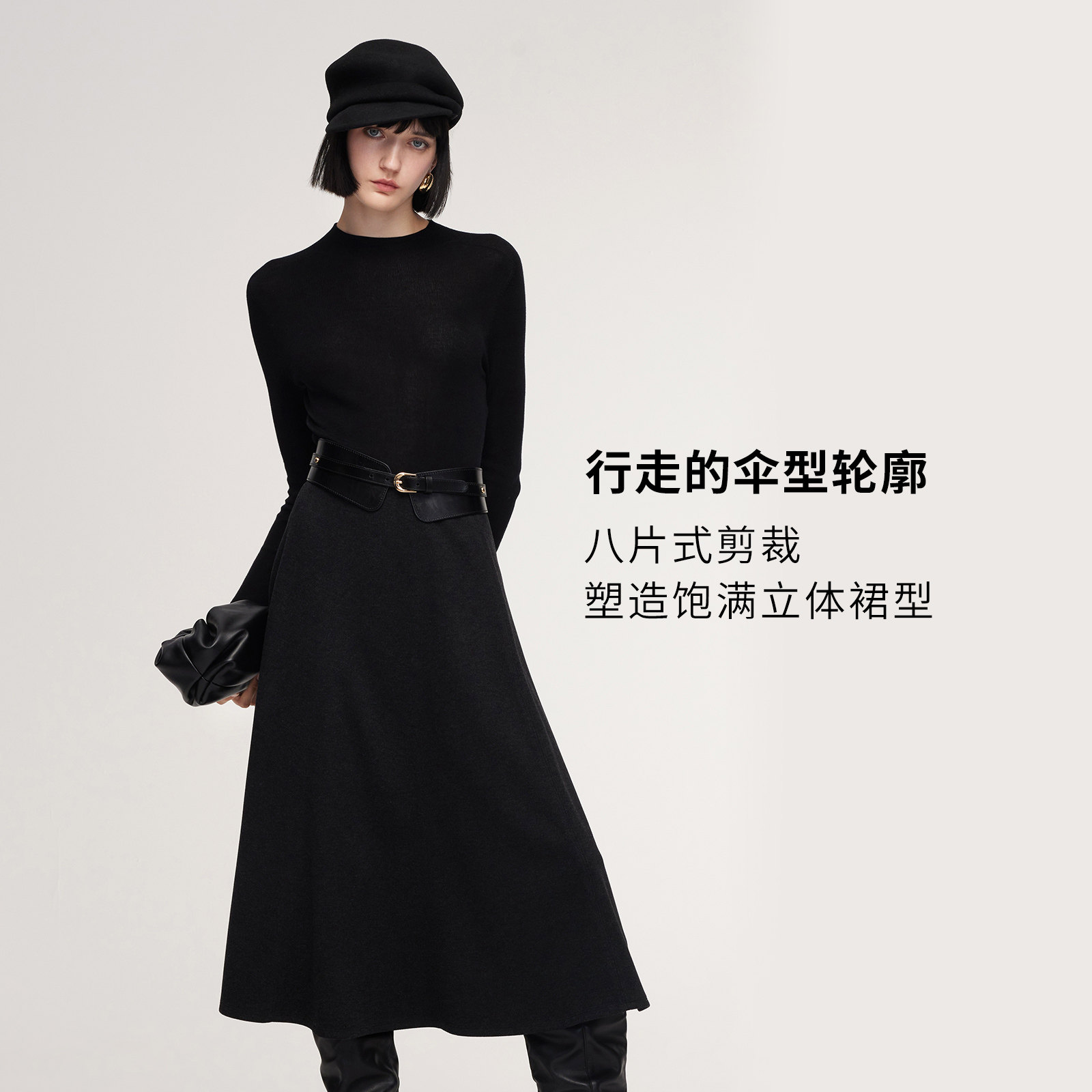 📚 歌莉娅针织半身裙女秋冬2025新款流行穿搭独特八片裙厚款高腰伞裙