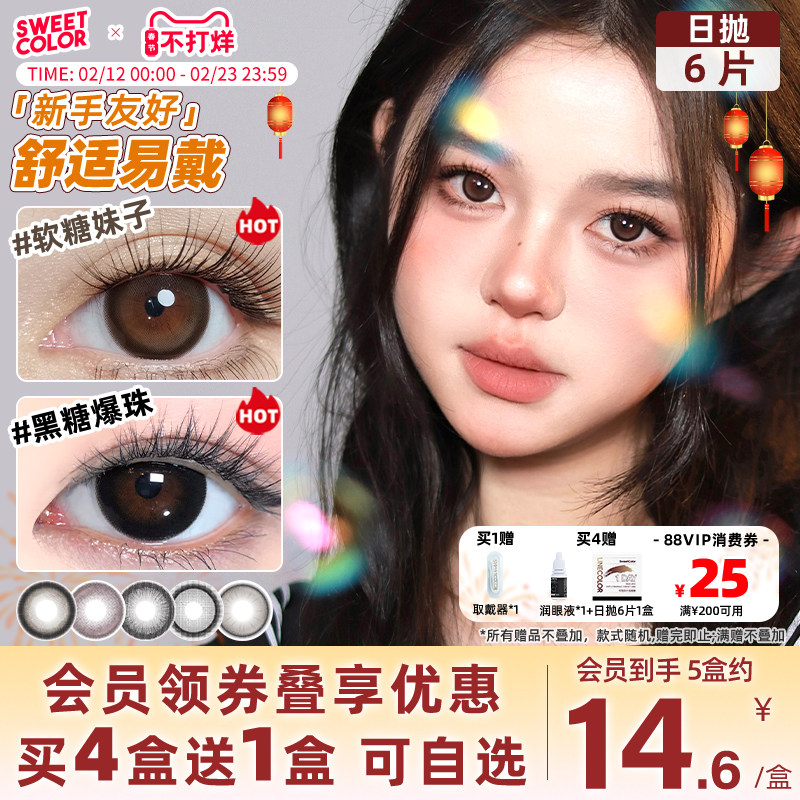 📚 SweetColor日抛6片美瞳自然软糖妹子棕学生通勤温柔百搭隐形眼镜