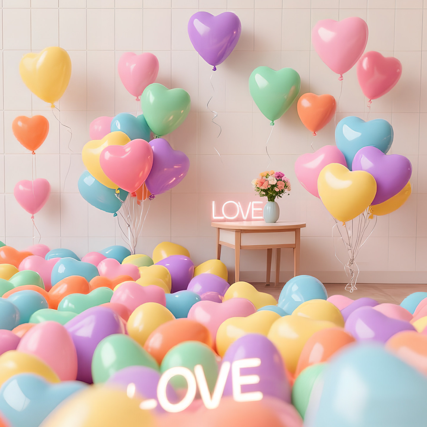 📚 粉白爱心形气球马卡龙飘空元旦节装饰表白求婚女孩生日仪式感布置