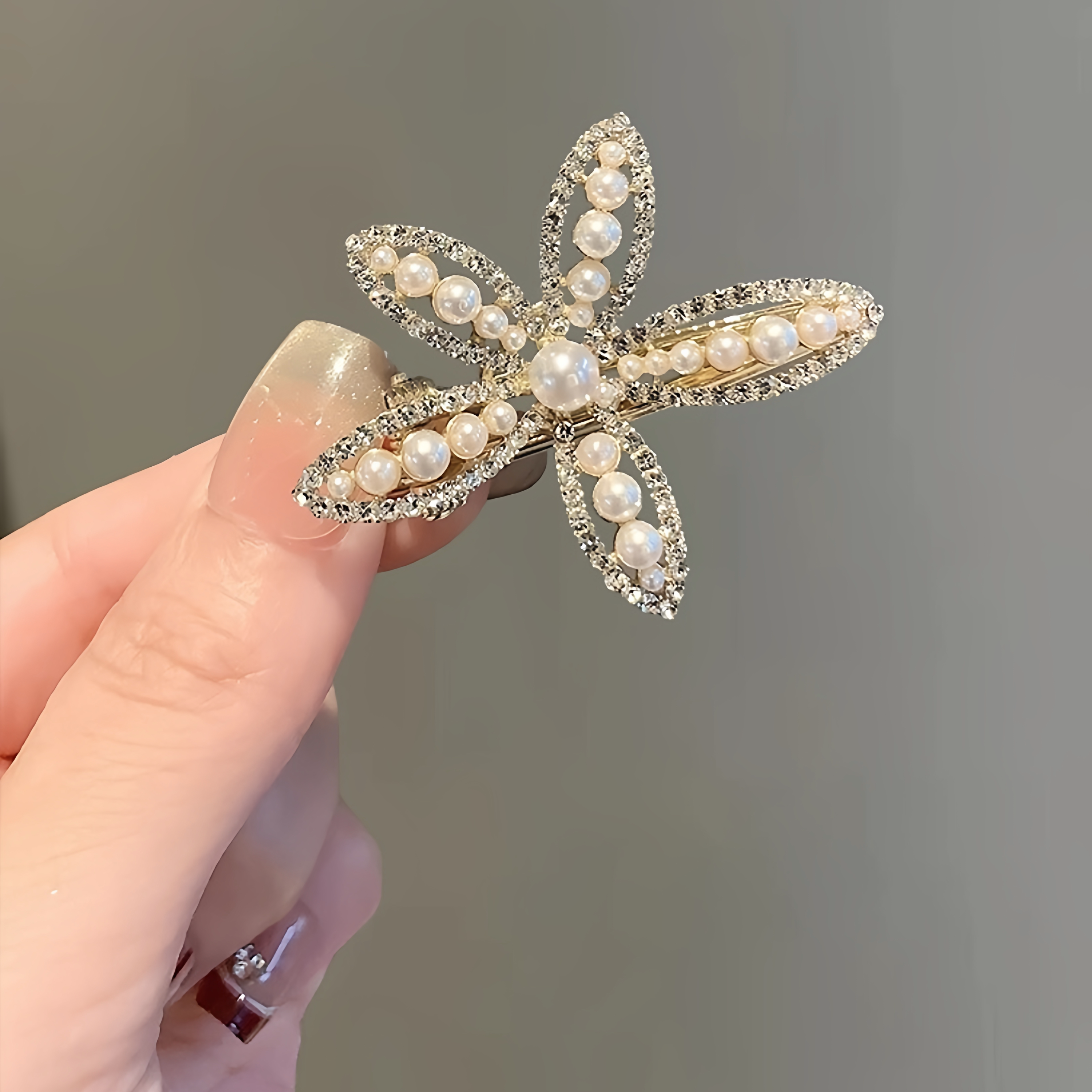 📚 精致珍珠花朵发夹女侧边夹新款刘海夹子简约气质水钻鸭嘴夹碎发夹