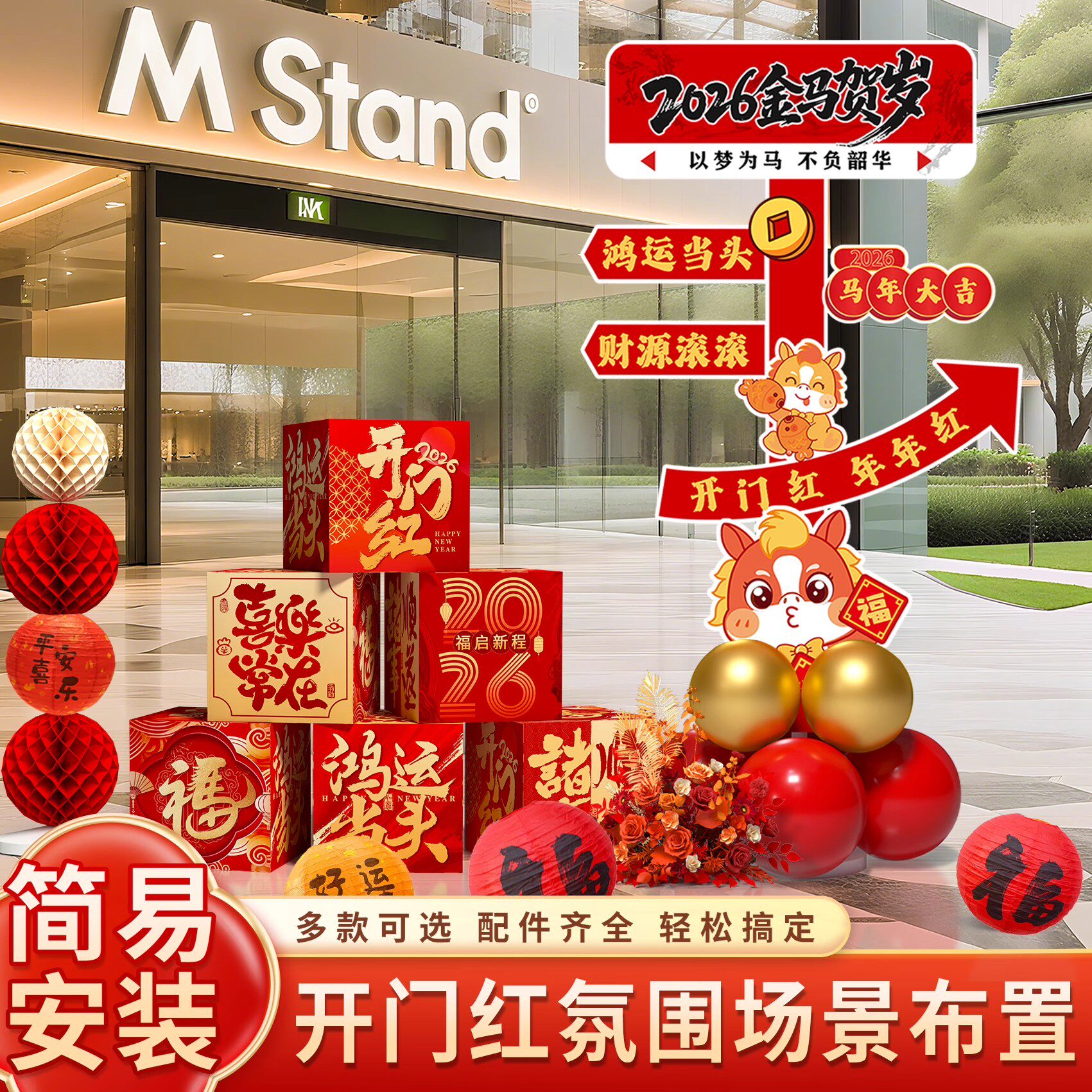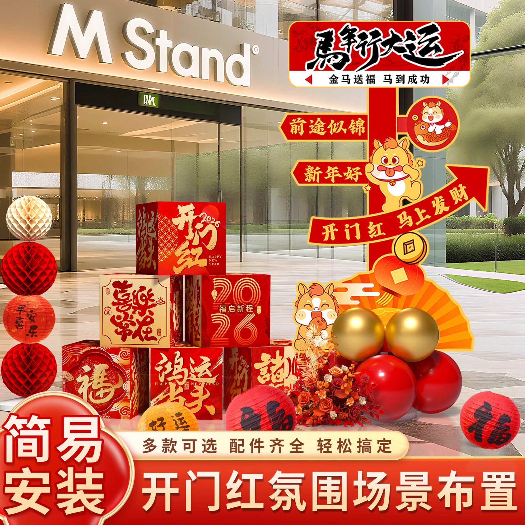 📚 新年氛围布置指引牌盒子装饰2026马年春节开门红公司年会场景kt板