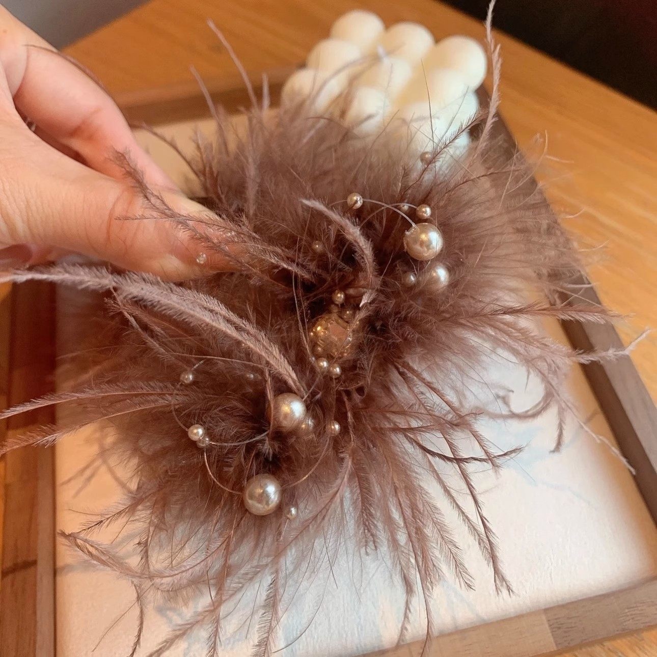 📚 2025秋冬新款羽毛发夹后脑勺抓夹女高级感鸵鸟毛头饰盘发鲨鱼夹子