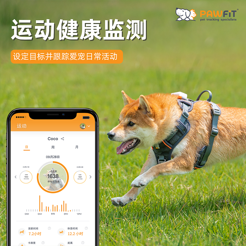 📚 英国PAWFIT宠物定位器狗猫咪防丢语音召回gps追踪防丢运动监测