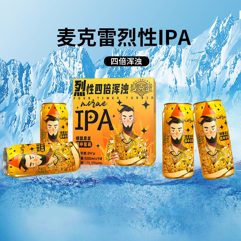 📚 麦克雷烈性啤酒国产精酿四倍浑浊四次发酵IPA500ml*9