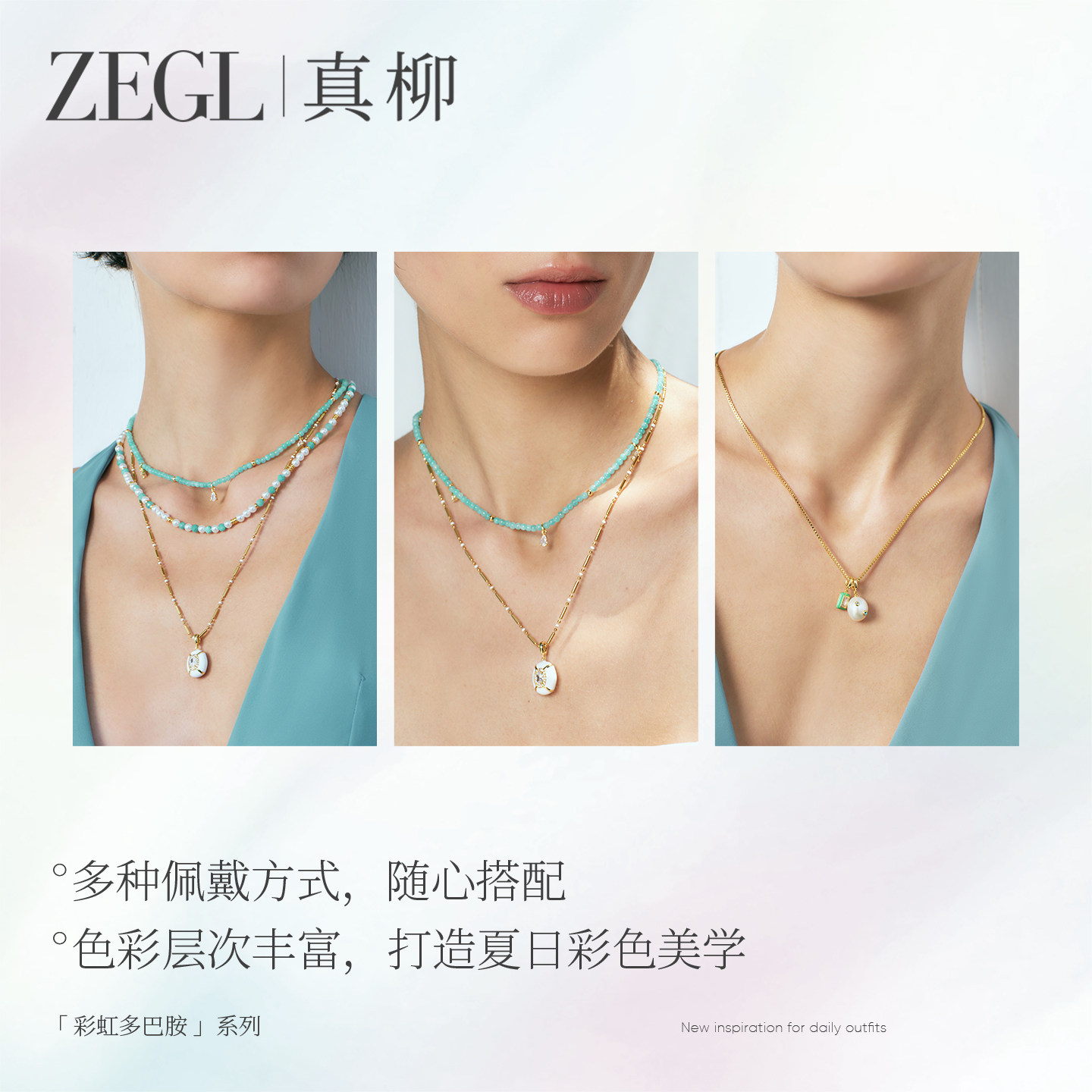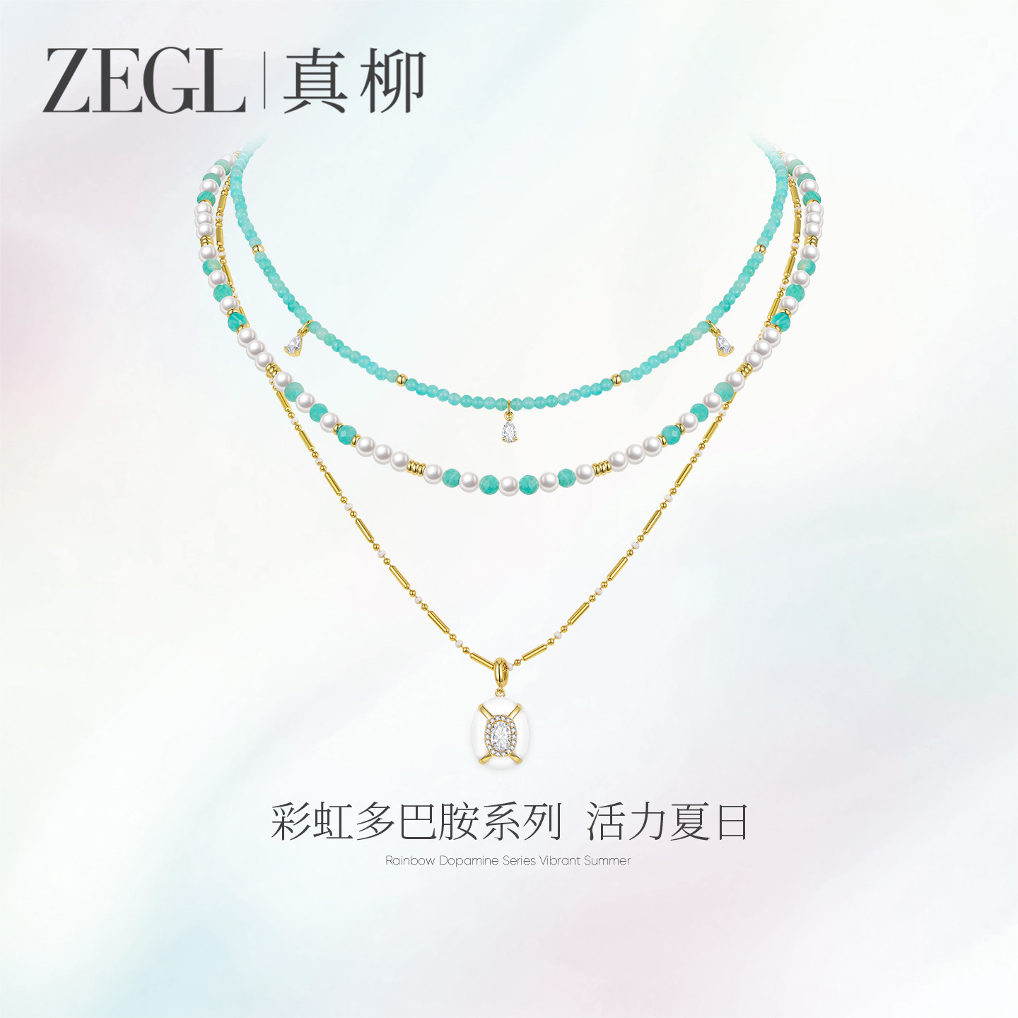 📚 ZEGL彩虹多巴胺系列珍珠项链叠戴款锁骨链女高级感轻奢海边配饰品