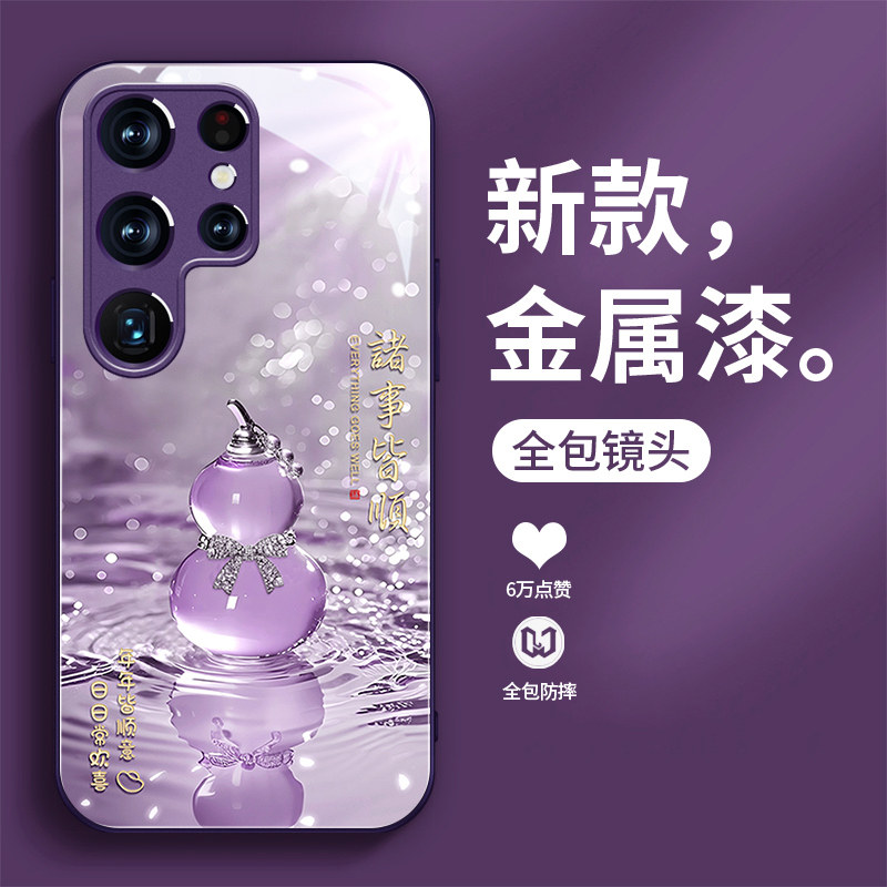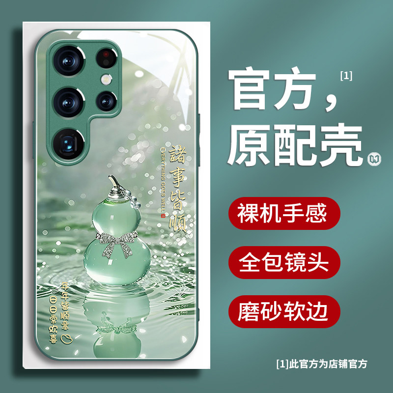 📚 玉葫芦适用三星s26手机壳高档玻璃s25ultra创意女款s24+潮流s23镜头全包21FE时尚防摔s20+中国风s20带挂绳s22