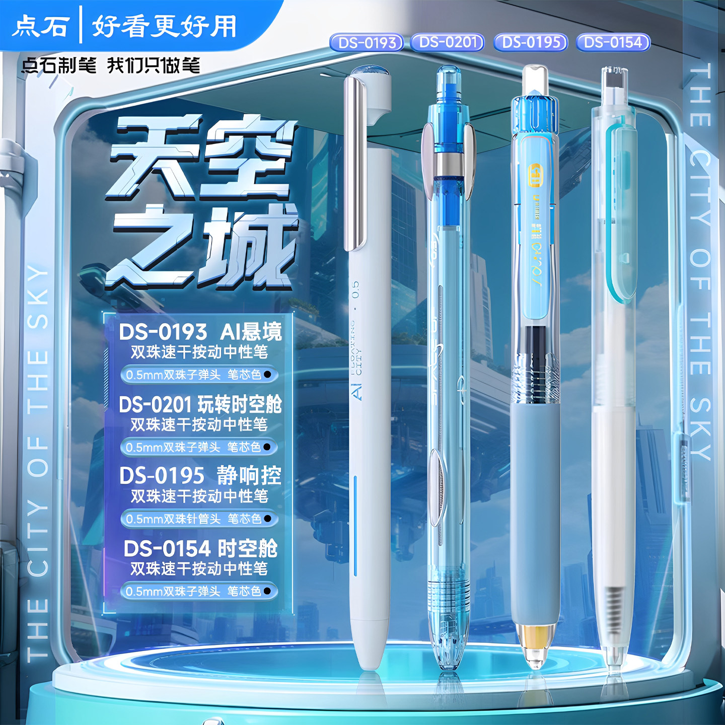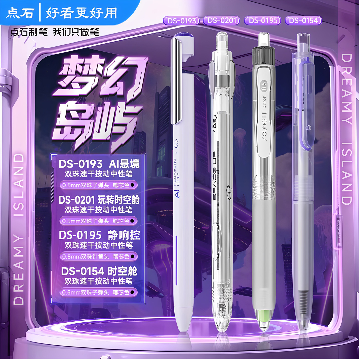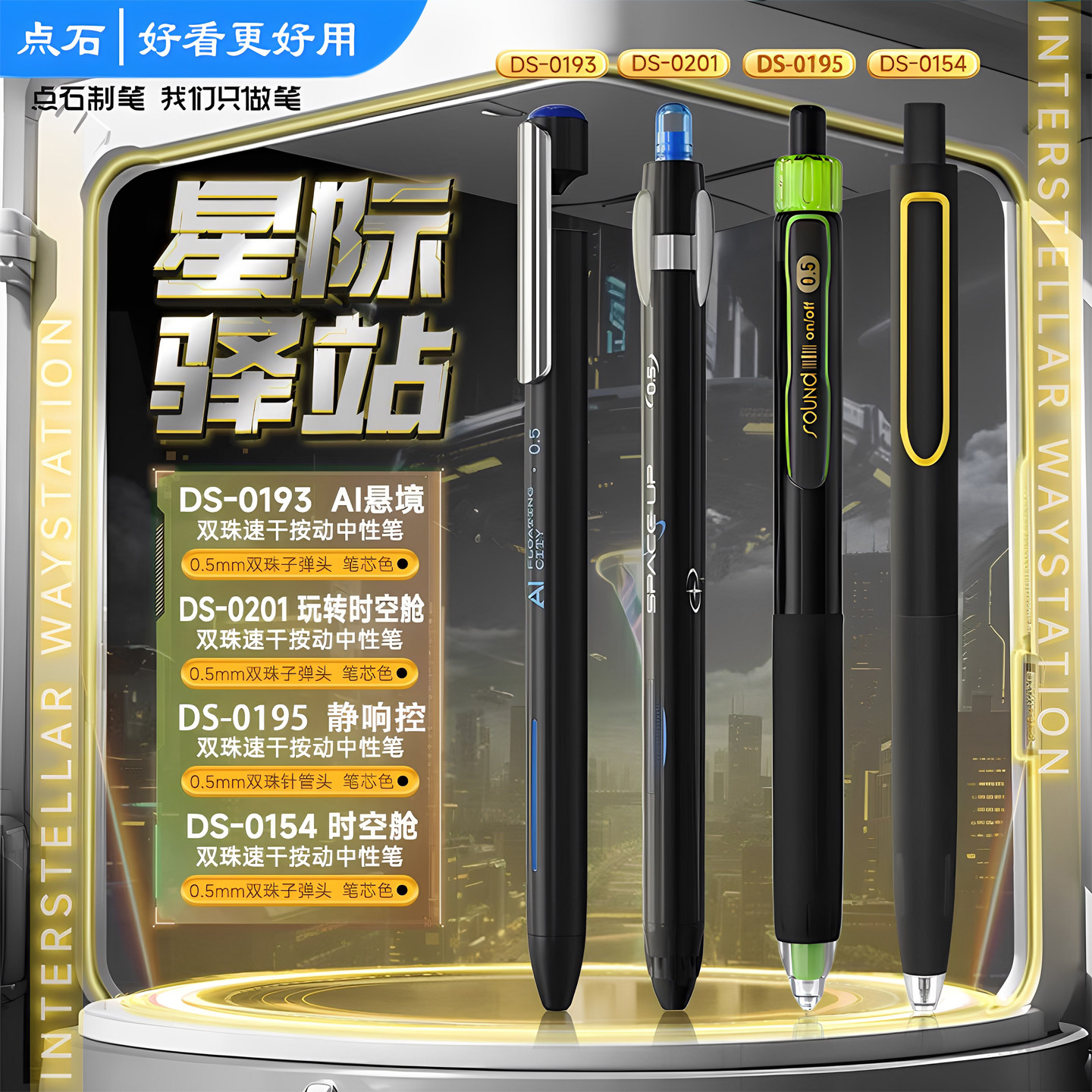 📚 点石制笔按动中性笔套装高颜值黑科技玩转时空舱AI悬镜静响控组合0.5mm双珠笔顺滑速干刷题笔学生签字笔黑色