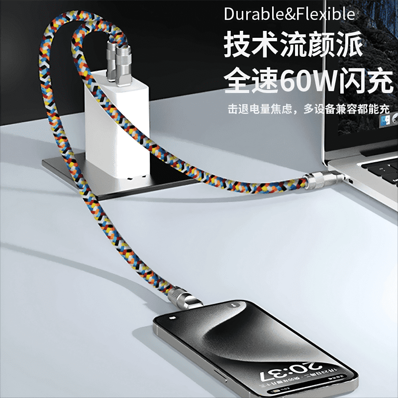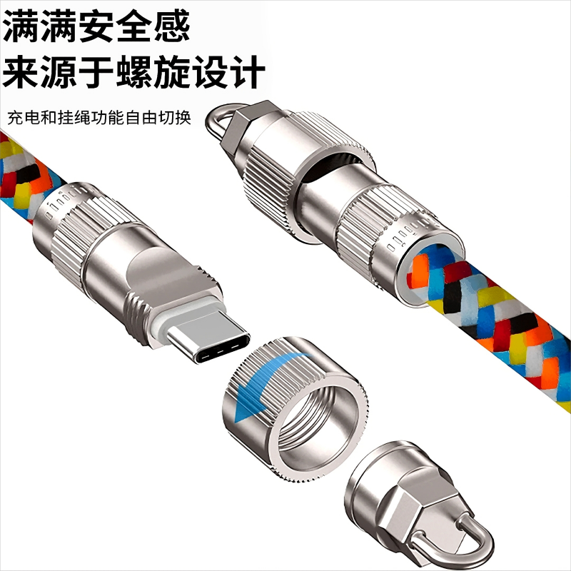 📚 连意100WPD充电线挂绳Type-C数据线100W超级快充适用苹果16/15华为荣耀小米oppo平板旅游用手机绳斜挎便携绳
