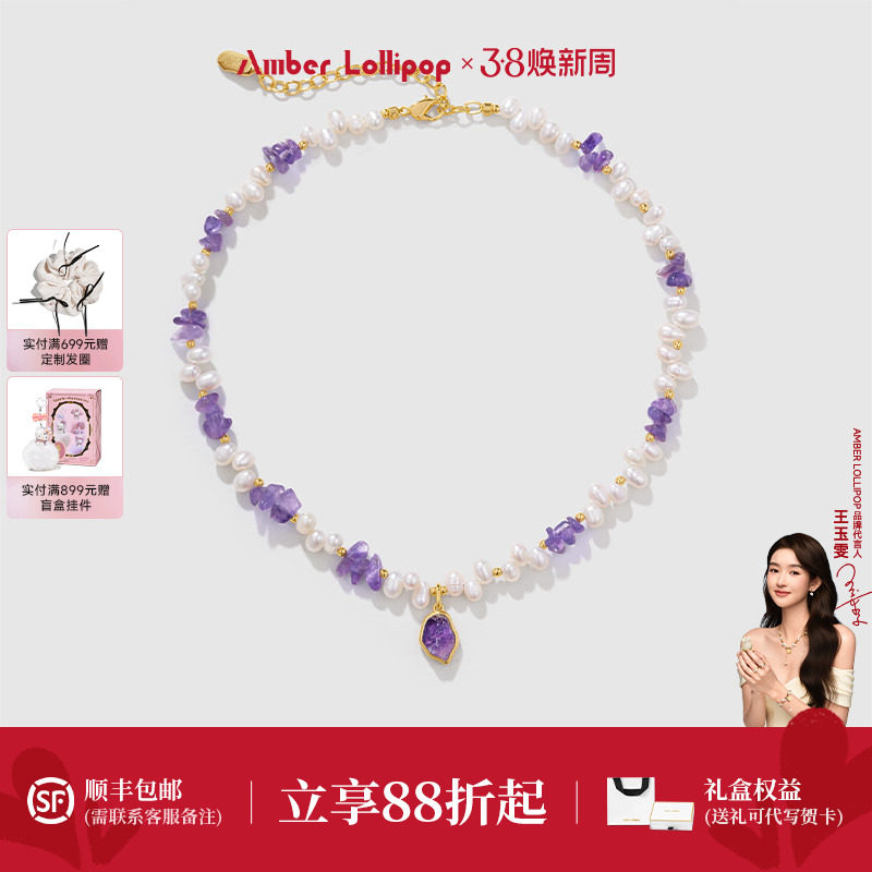 📚 Amber Lollipop淡水珍珠项链女款紫水晶锁骨链轻奢宝石小米珠颈链