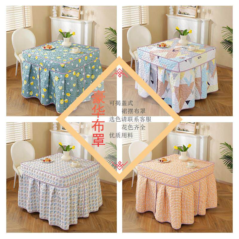 📚 不锈钢烤火桌子家用正四方形餐饭桌电取暖多功能折叠棋牌桌烤衣架