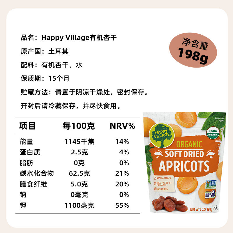📚 Happy Village有机杏干土耳其原装进口无麸质黑杏孕妇零食果脯