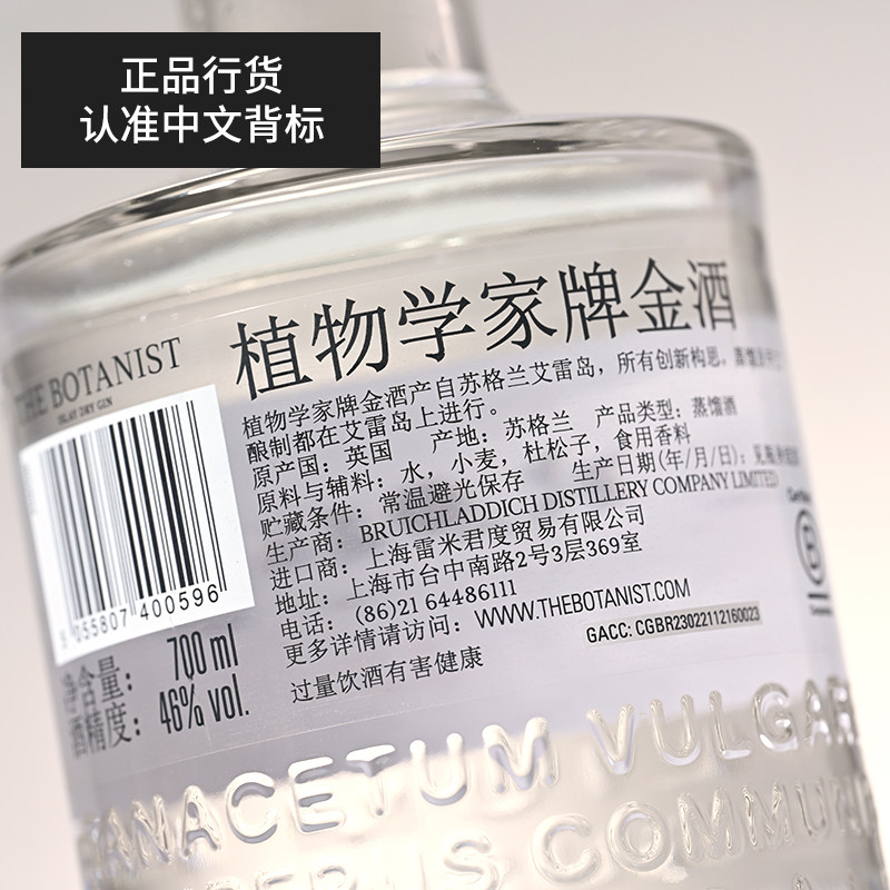 📚 植物学家牌金酒艾雷岛干金酒700ml杜松子酒GIN酒调酒基酒进口洋酒