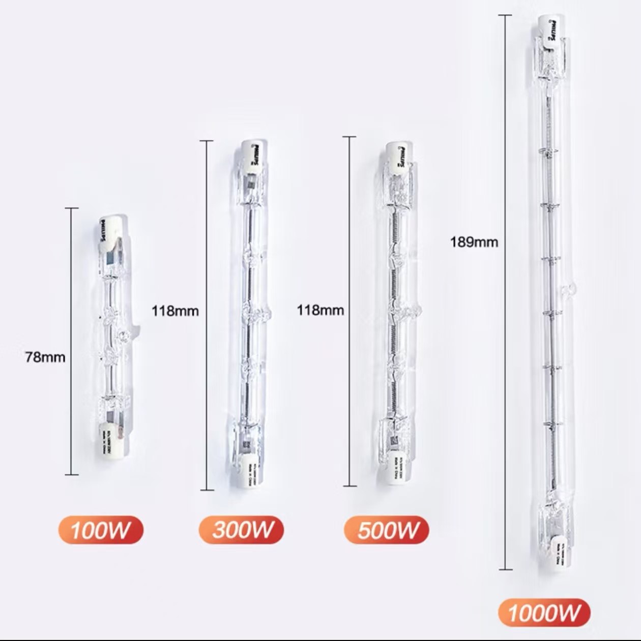 📚 顶式夹式碘钨灯管瓦数全加热太阳灯管烤鸭炉R7S 双端卤钨灯灯座