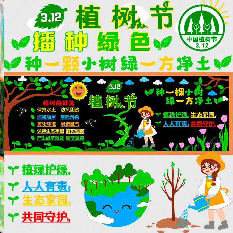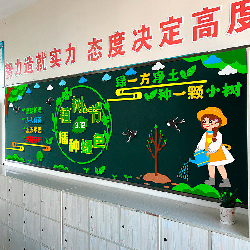 📚 主题布置墙贴教室先行文化墙中小学材料花草班级植树节板报立体
