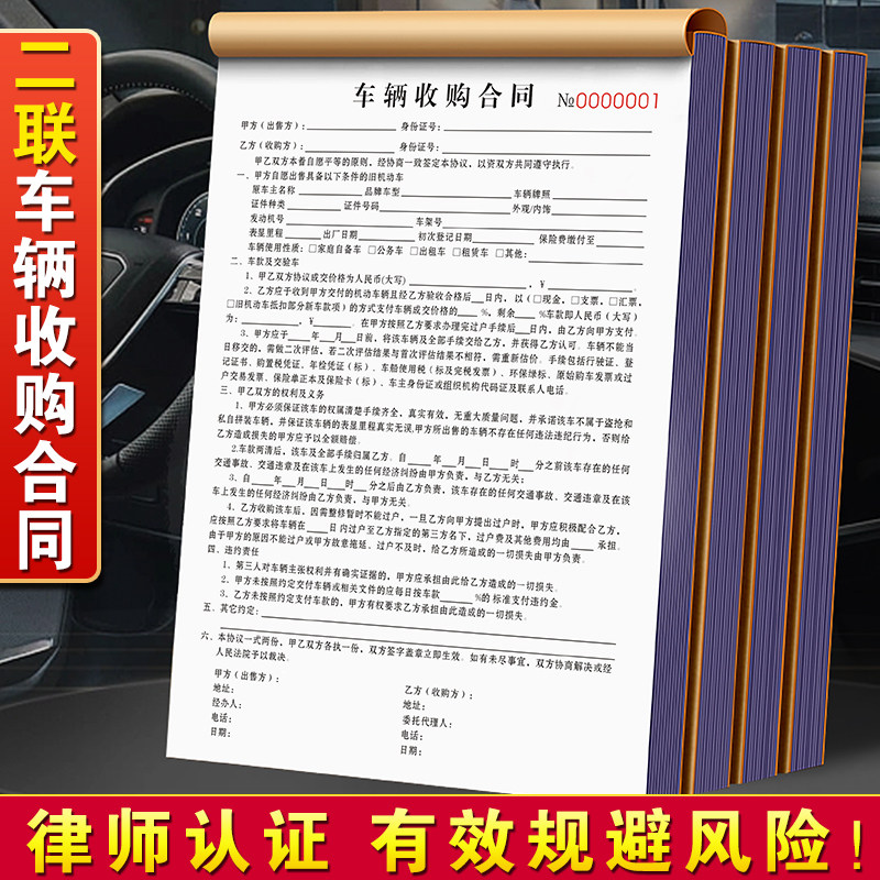 📚 车辆收购合同二联定制汽车销售单买车卖车合约本收车购车意向收条清单新能源电动车事故车车辆转让交易协议书