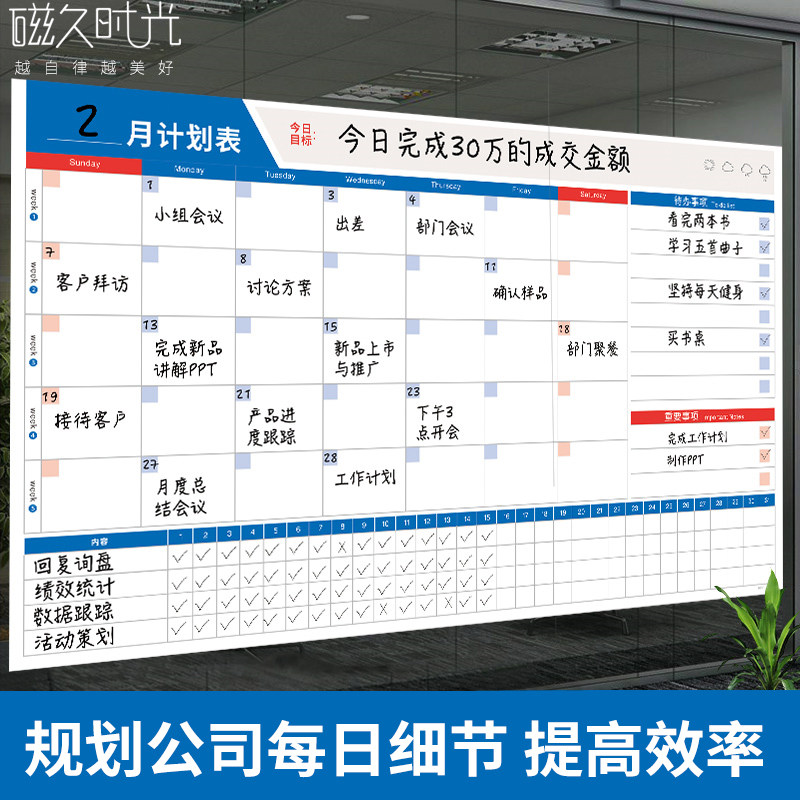 📚 2026年月度工作计划表墙贴365天工作进度表大号行事历可擦写白板办公室日历任务板时间管理规划安排定制企业