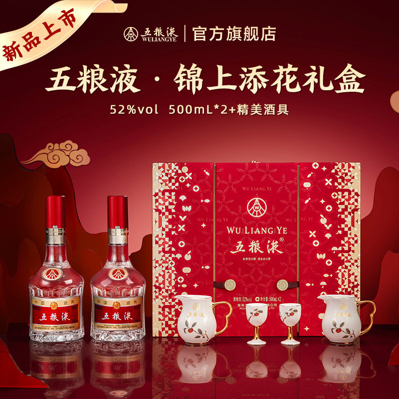 📚 【年货抢购中】第八代五粮液普五锦上添花礼盒52度500mL*2瓶官方