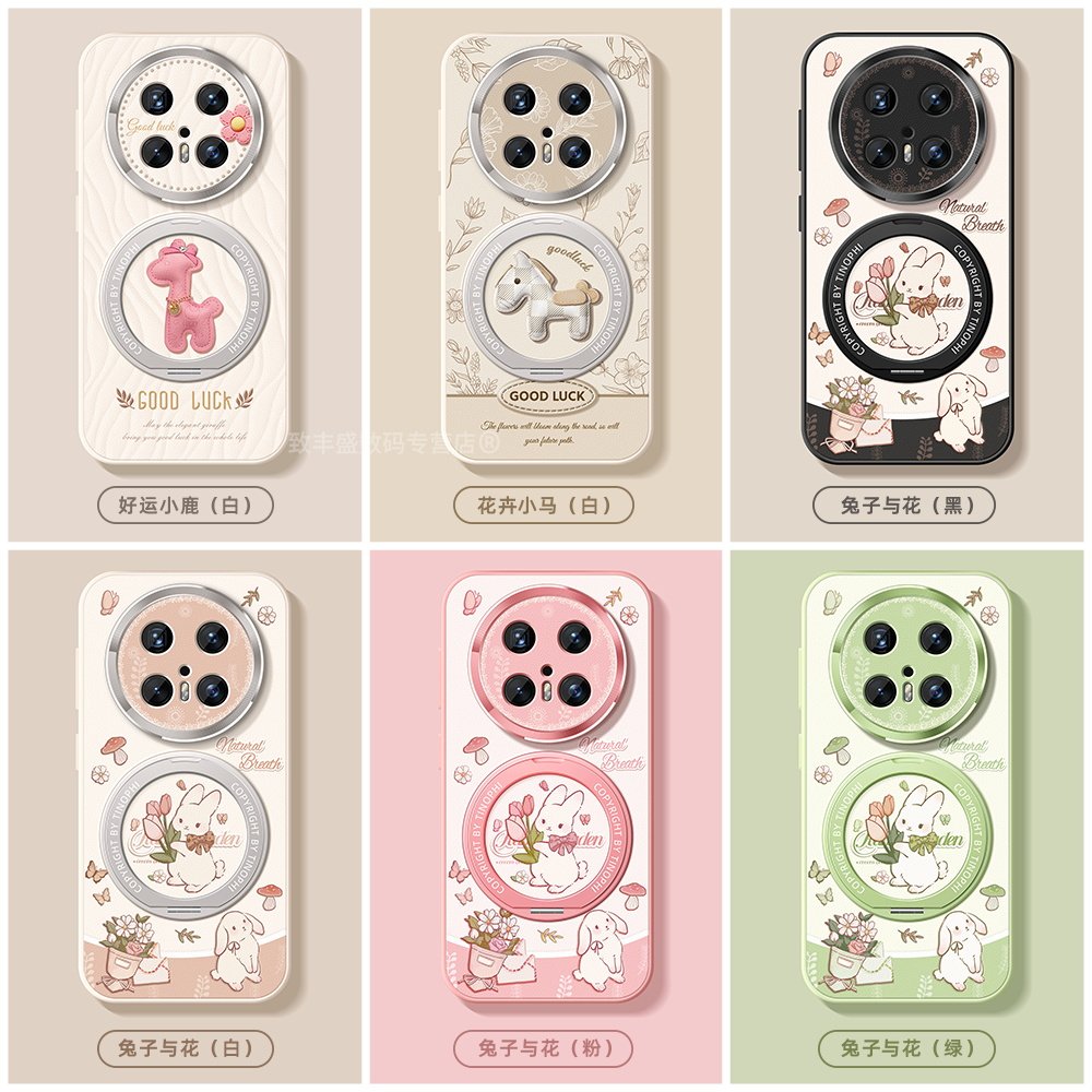 📚 适用华为mate80promax手机壳磁吸支架mate70pro保护套新款mate60金属镜头圈防摔硅胶pro+全包好运小鹿软外壳