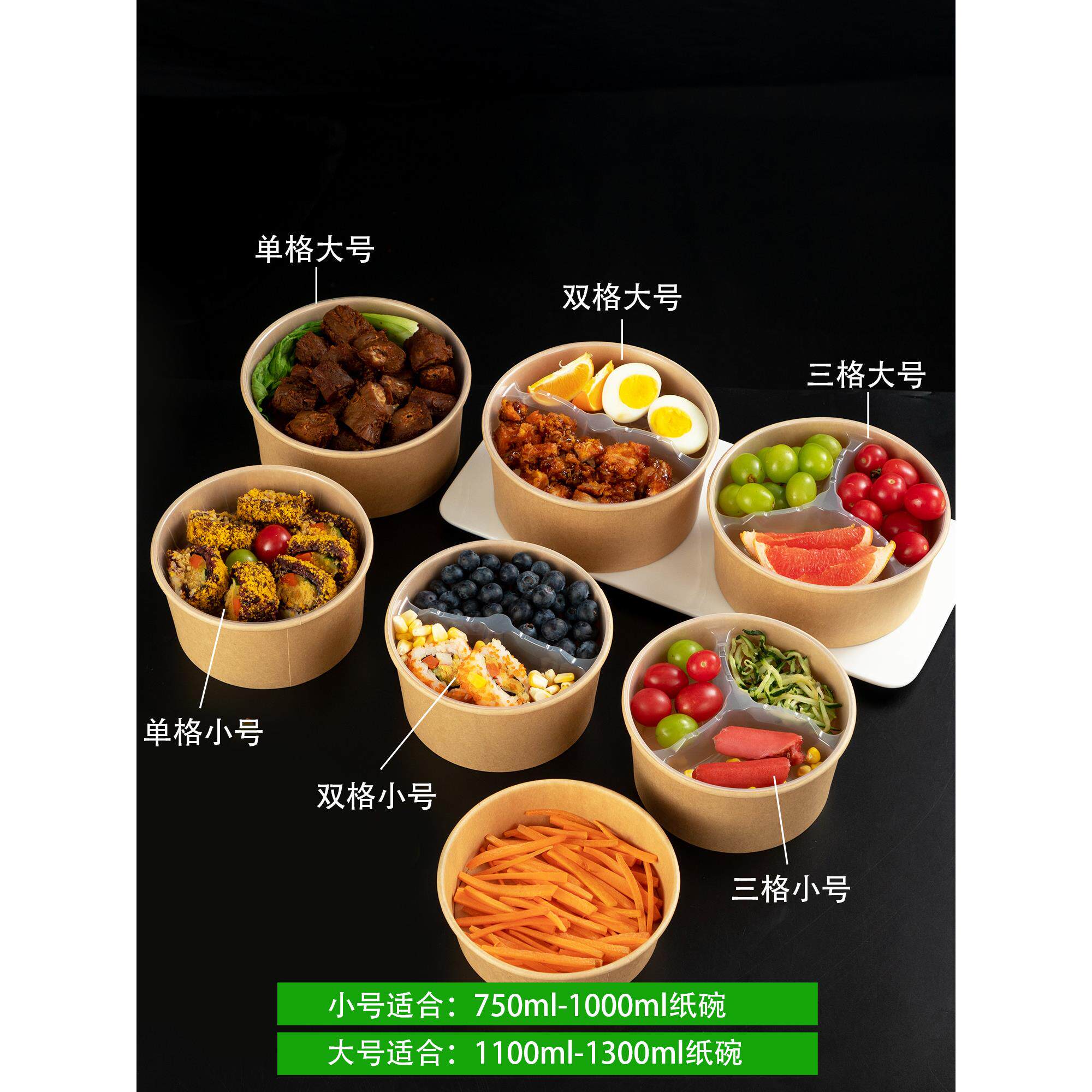 📚 一次性牛皮纸碗双层内托内衬外卖打包盒单双格三格分层隔层快餐盒